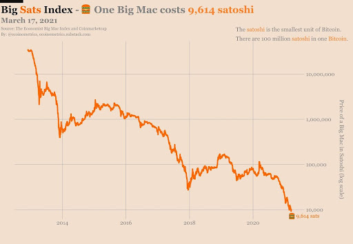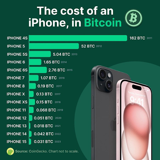 Instead of distorting that productivity increase by pricing it in an inflationary money, we price it in Bitcoin, and we rediscover the natural order of technological advancement.