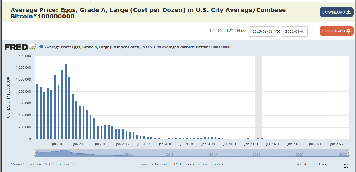 In the Bitcoin world, the cost to produce the loaf of bread goes from $5 to $4 as technology advances (do you think we are more efficient at making bread than we were in the past? Then it should cost less to make it).